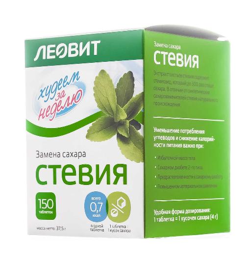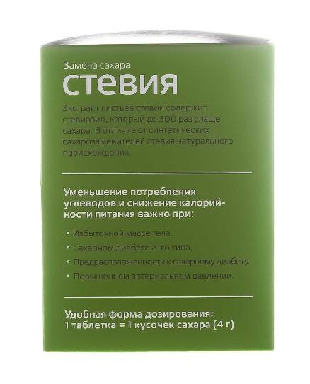 Натуральный экстракт листьев стевии содержит стевиозид, который до 300 раз слаще сахара. В отличие от синтетических сахарозаменителей «Стевия» полностью натуральна. Используйте натуральный сахарозаменитель «Стевия» вместо сахара, если хотите уменьшить калорийность ваших блюд. В одной таблетке Стевии всего 0,7 ккал.