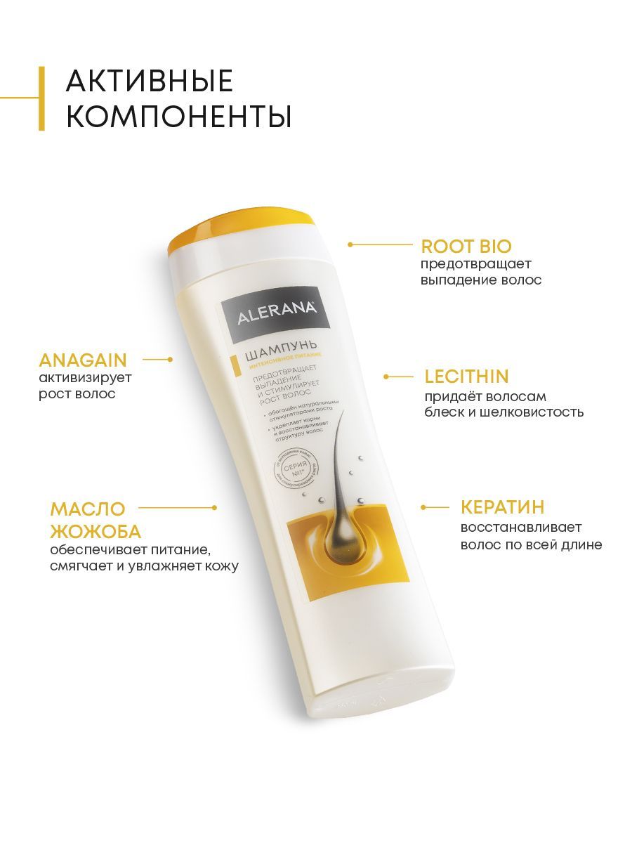 Инновационный продукт разработан для усиления роста, интенсивного питания и укрепления ослабленных волос. В составе шампуня – комбинация активных компонентов с доказанной эффективностью, которая: