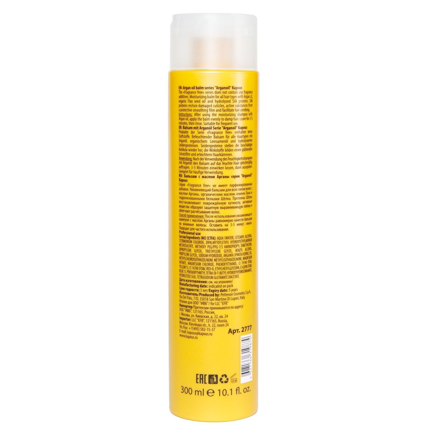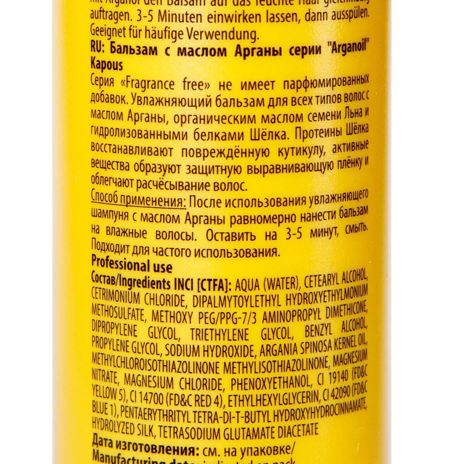 Увлажняющий бальзам c маслом арганы создан специально для глубокого питания локонов по всей длине. Подойдет для всех типов волос.