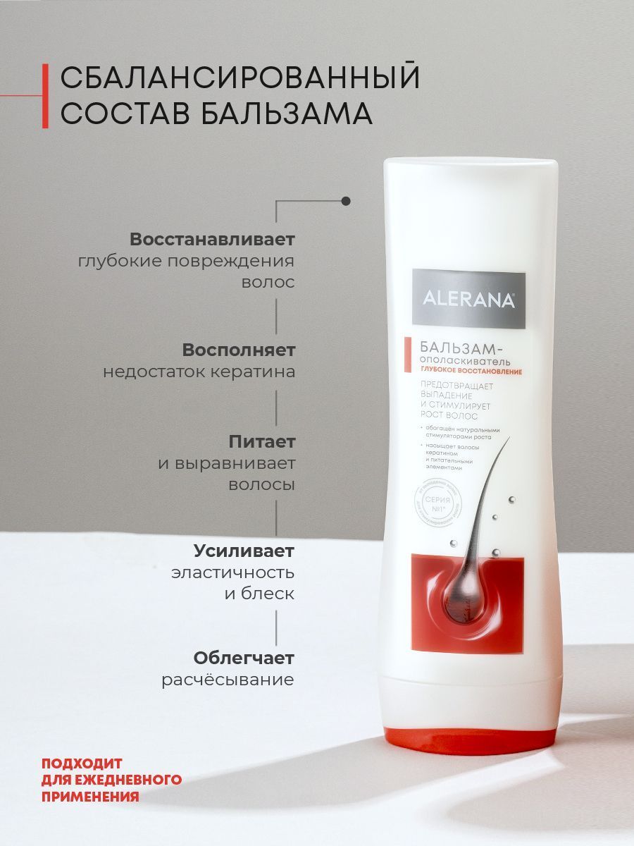 Нанести на влажные волосы, распределить по всей длине волос. Оставить на 3 минуты, затем смыть теплой водой. Подходит для длительного применения. Максимальный результат достигается при регулярном применении после шампуня Alerana.