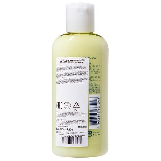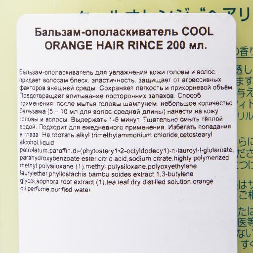 Состав: alkyl trimehylammonium chloride, cetostearyl alcohol, liquid petrolatum, paraffin, di-phytostery1-2-octyldodecy1-n-lauroyl-l-glutamate, parahydroxybenzoate ester, citric acid, sodium citrate, highly polymerized methyl polysiloxane (1), methyl polysiloxane, polyoxyethylene laurylether, phyllostachis bambu soides extract, 1,3-butylene glycol, sophora root extract (1), tea leaf dry distilled solution, orange oil, perfume, purified water.