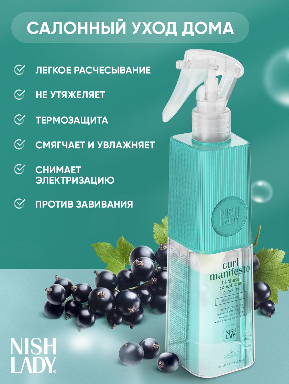 Этот кондиционер делает волосы блестящими и послушными. Он предотвращает электризацию и завивание волос в течение дня. Кроме того, кондиционер позволяет легко придать волосам желаемую форму, поскольку он обволакивает их и создаёт защитный экран от высоких температур.