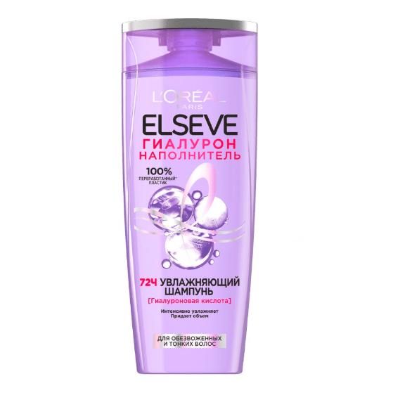 Увлажняющий шампунь Elseve Гиалурон Наполнитель обволакивает кутикулу волоса, интенсивно очищая и восстанавливая посредством увлажнения на 72 часа*.