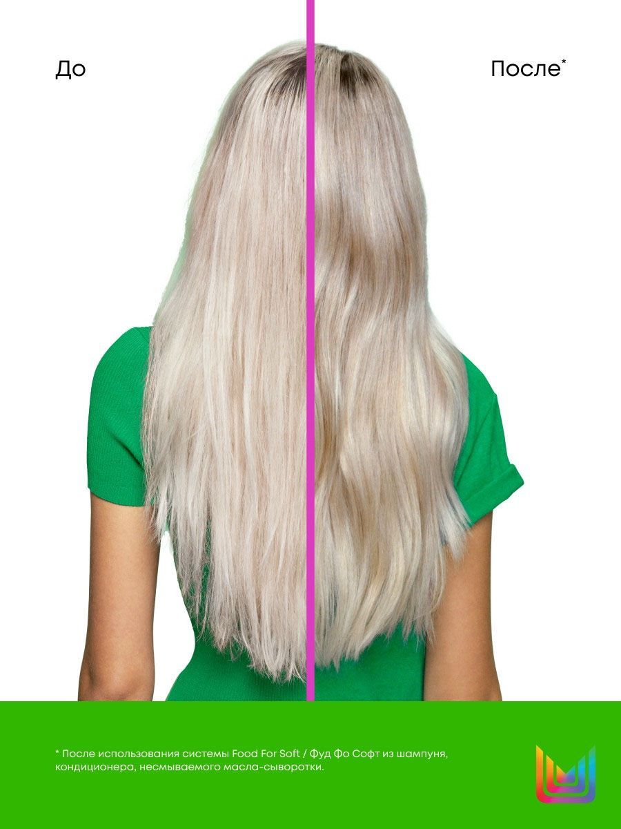 Мягкий шампунь Food For Soft - это очищающий и увлажняющий уход для сухих волос. Бережно очищает волосы и кожу головы от возможных загрязнений. Для наиболее эффективного увлажнения и удержания влаги внутри волоса в состав шампуня добавлены гиалуроновая кислота и масло авокадо.