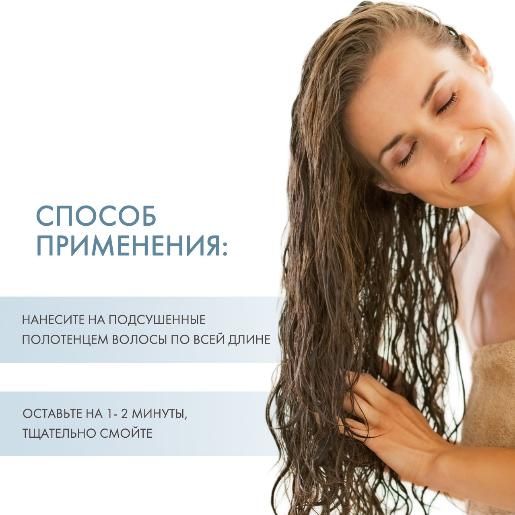 Нанесите на подсушенные полотенцем волосы по всему полотну. Оставьте на 1- 2 минуты. Тщательно смойте.