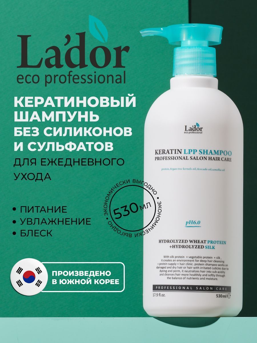 Кератиновый шампунь для для ежедневного ухода Keratin Shampoo Ph 6.0, 530 мл