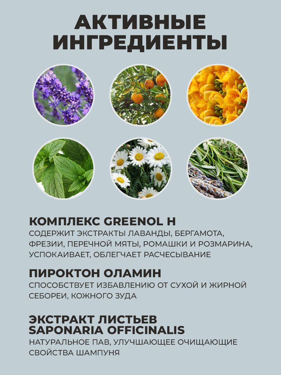 Состав: water, sodium laureth sulfate, sodium lauryl sulfate, cocamidopropyl betaine, sodium chloride, cocamide mea, glycol distearate, polyquaternium-7, acrylamidopropyltrimonium chloride/acrylamide copolymer, polyquaternium-10, sodium benzoate, hydroxyacetophenone, piroctone olamine, disodium edta, citric acid, ppg-3 caprylyl ether, quaternium-80, lavandula angustifolia (lavender) flower extract, monarda didyma leaf extract, mentha piperita (peppermint) leaf extract, freesia refracta extract, anthemis nobilis flower extract, rosmarinus officinalis (rosemary) leaf extract, butylene glycol, 1,2-hexanediol, saponaria officinalis leaf extract, fragrance, alpha-isomethyl ionone, citronellol, hexyl cinnamal