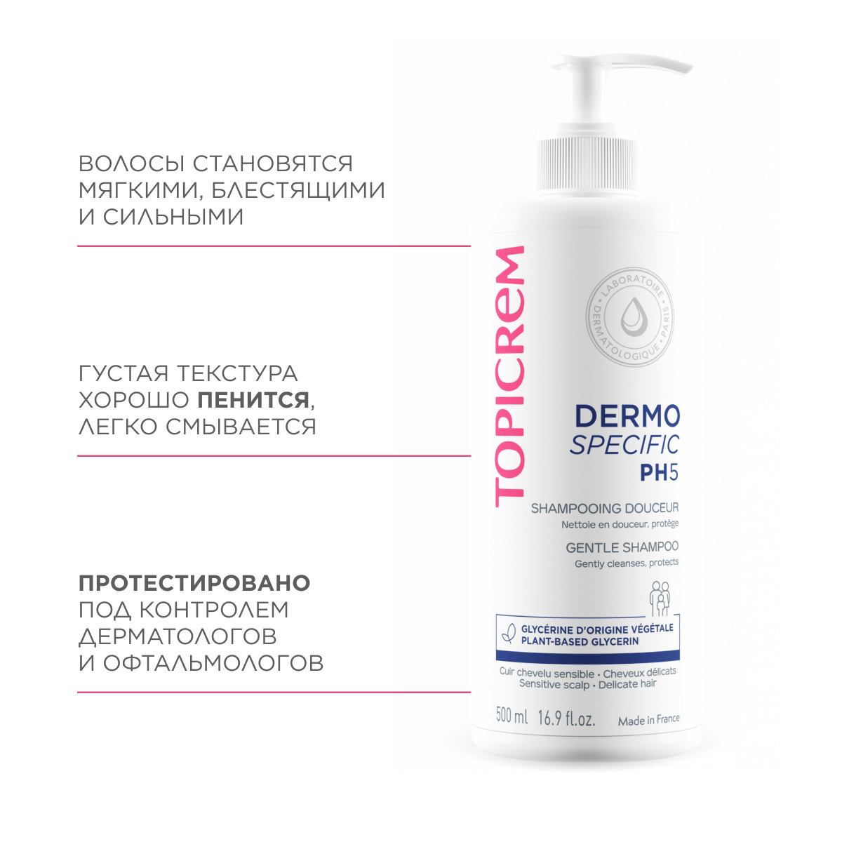 Меня беспокоила раньше сухость кожи головы, зуд и повышенная чувствительность к моющим средтвам. Выбралла для себя этот шампунь от Топикрем. У него физиологический PH, не содержит сульфатов, парабенов. Мне шампунь понравился, зуд ушел, хорошо увлажняет кожу головы