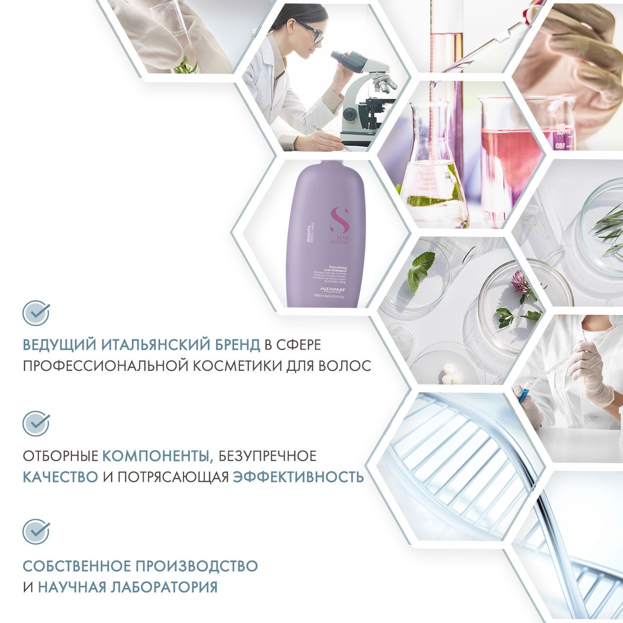 Semi di Lino Smooth (SDL Smoothing) - это средства для непослушных волос, разработанные для эффективного увлажнения, выравнивания структуры, предотвращения пушистости, защиты от негативного воздействия климатических условий и восстанавления естественной красоты волос. Средства предназначены для всех типов волос, как тонких, так и густых, чтобы добиться идеальной гладкости и длительного результата.