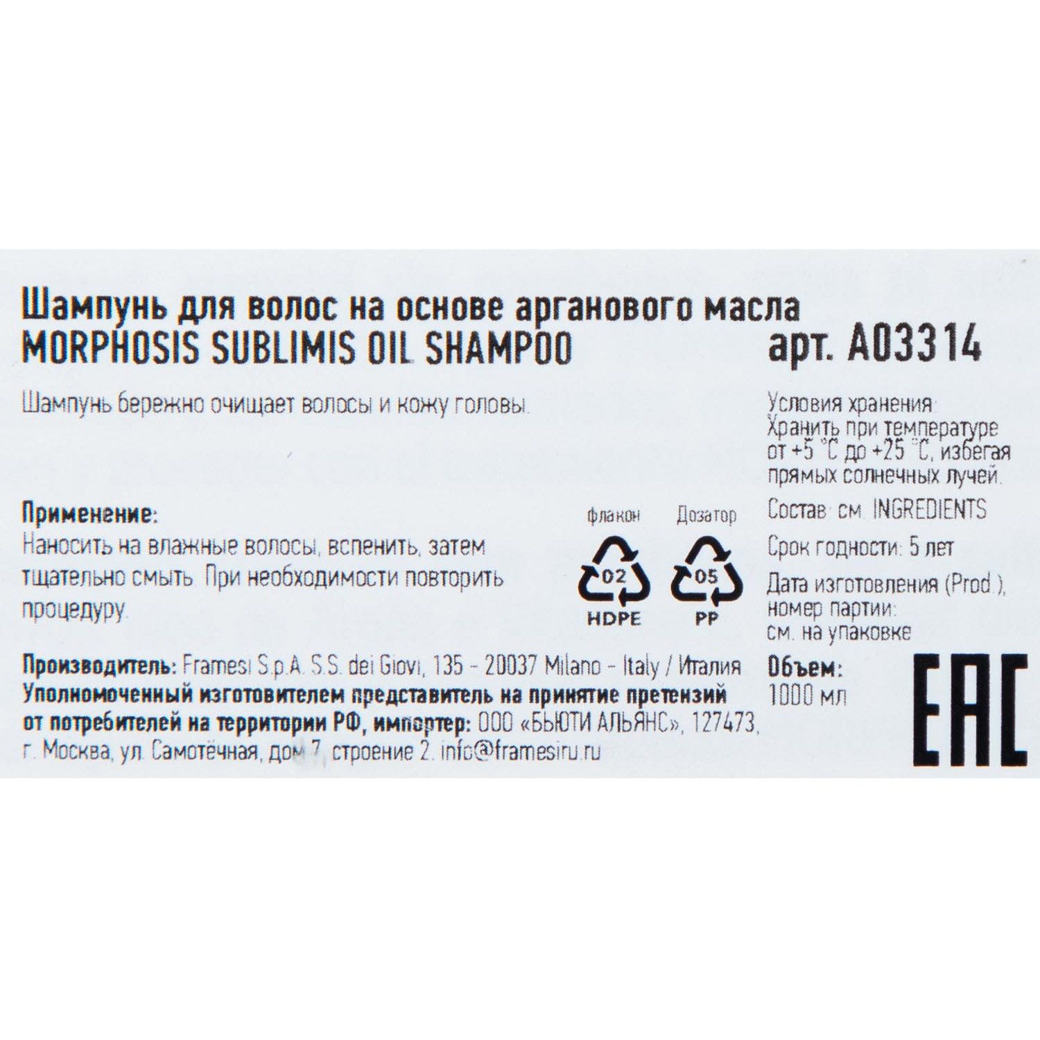 Шампунь для волос на основе арганового масла Sublimis Oil с физиологическим pH 5,5, подходит для всех типов волос и чувствительной кожи головы. Питает, предотвращает сухость волос, оказывает Anti-age эффект, делает их шелковистыми и мягкими.