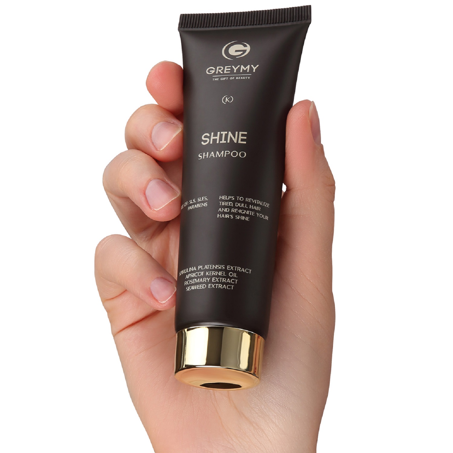 Нанесите массажными движениями на влажные волосы и кожу головы. Вспеньте и тщательно смойте. После применения шампуня используйте кондиционер Greymy Shine Conditioner.
