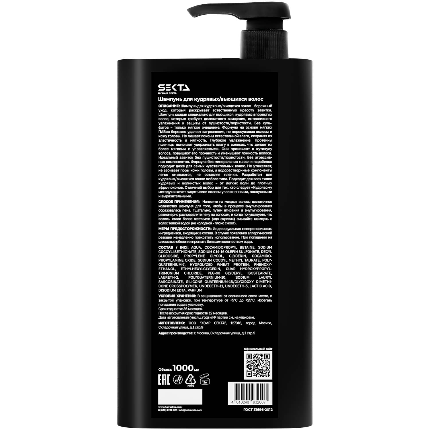 Формула без сульфатов мягко очищает кожу головы и волосы, сохраняя их естественную влагу, эластичность и мягкость. Интенсивно увлажняет волосы, укрепляя их, уменьшает ломкость и делает послушными, сохраняя завиток без пушистости. Не содержит агрессивных компонентов, таких как минеральные масла и парабены, что делает его подходящим даже для самых чувствительных волос. Он не утяжеляет локоны, не забивает поры кожи головы и легко смывается, не оставляя пленки.