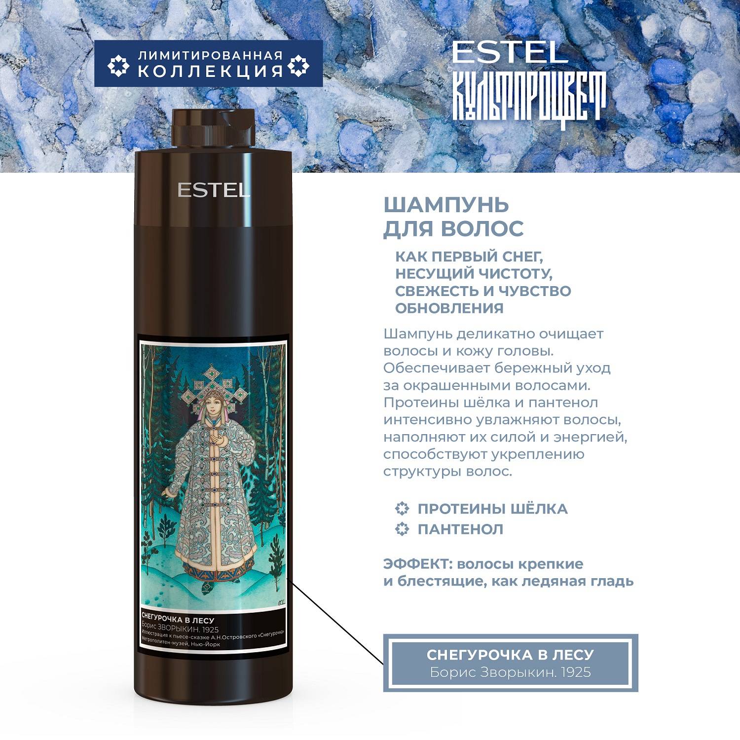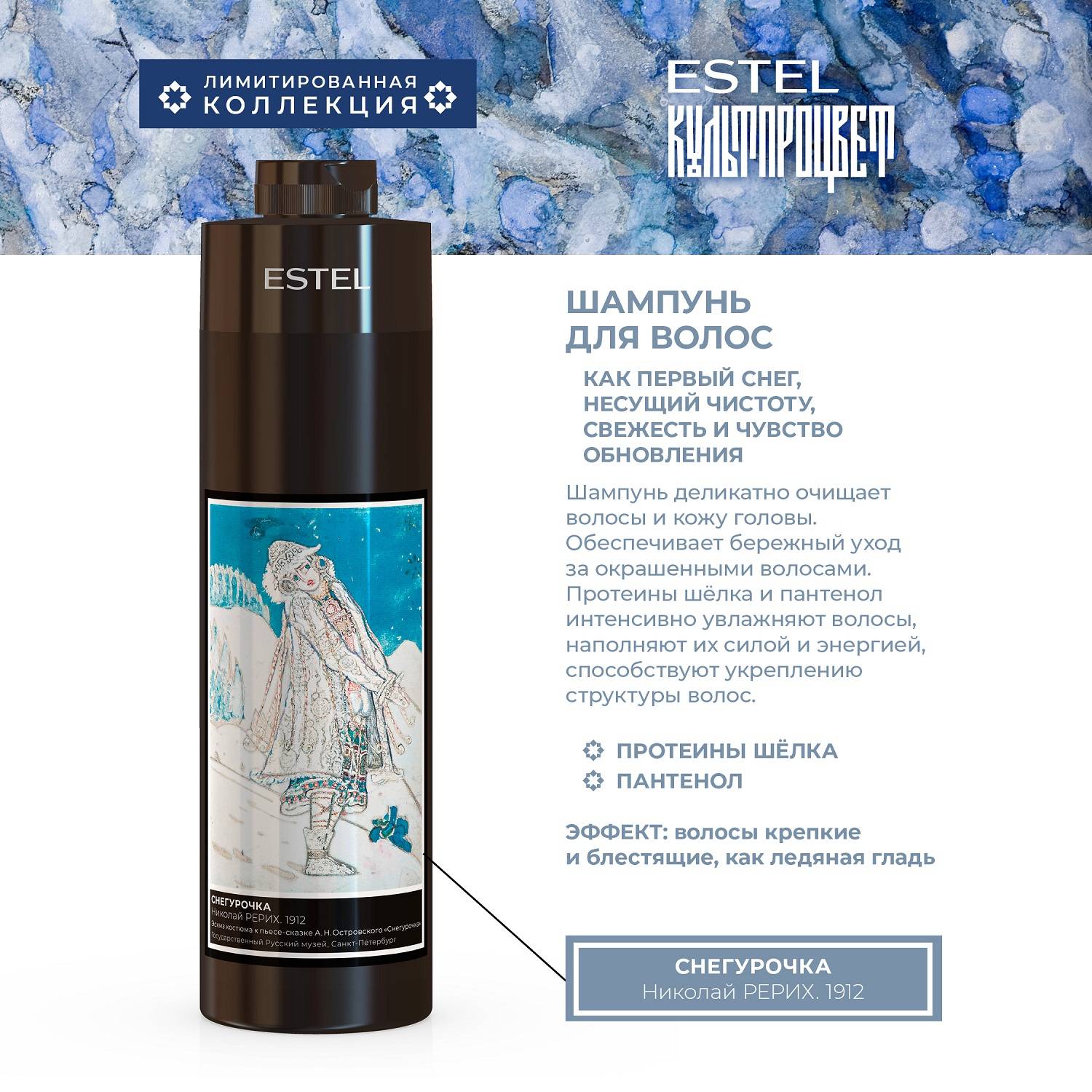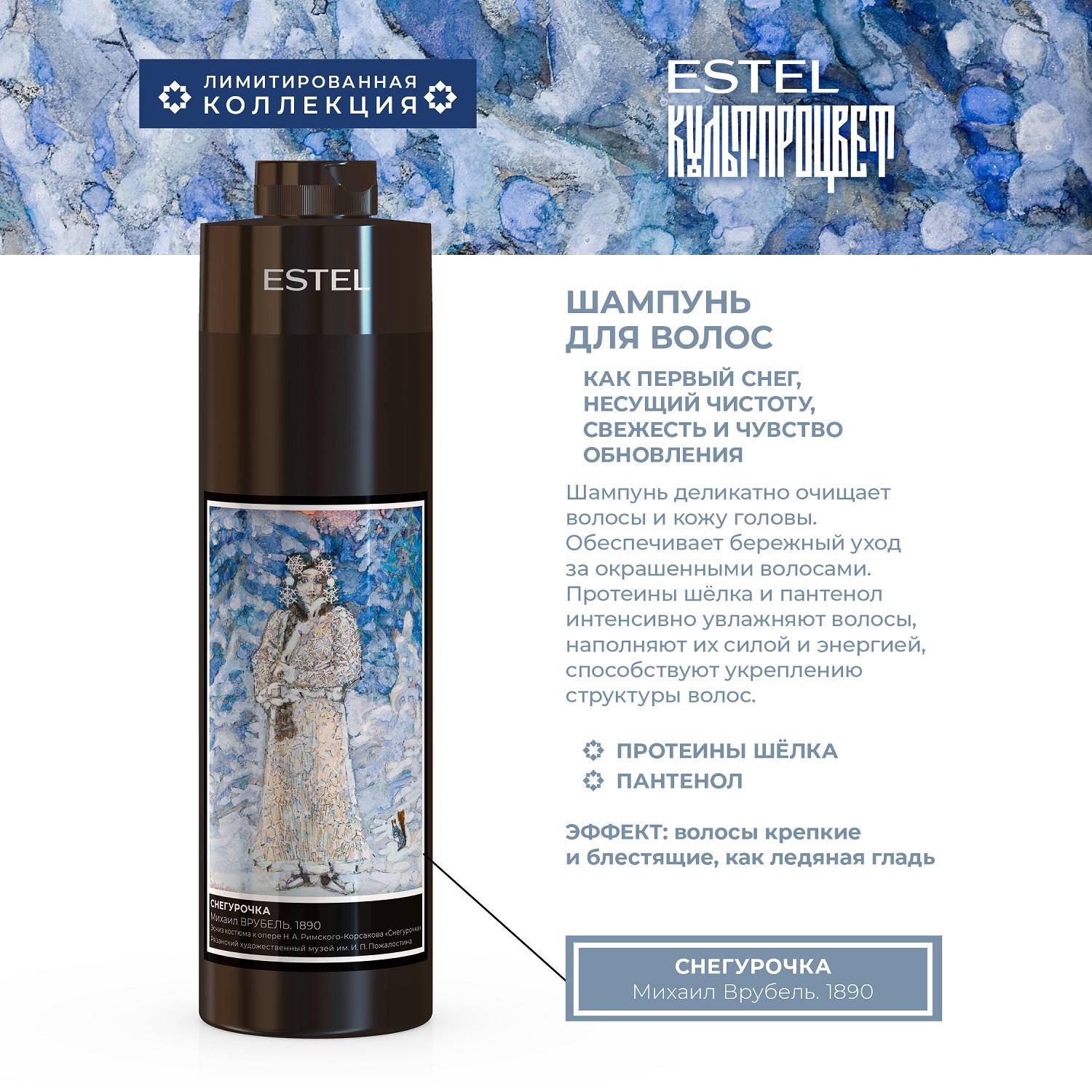 Культпроцвет – специальный проект Estel в сотрудничестве с музеями России, предоставившими репродукции великих картин для погружения в мир искусства и зимних чудес. Идея соединяет магию образа Снегурочки, силу искусства и современные формулы для ухода за волосами.
