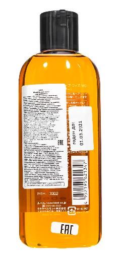 Состав: sodium alkanesulfonate, sodium benzoate, sodium polyoxyethylene lauryl ether acetate, cocoyl amide propyldimethyl glycine solution,0- [2-hydroxy-3-(trimethylammonio)propyl] hydroxyethylcellulose chloride,polyn n'-dimethyl-3, 5-methylene~piperidinium chloride solution, citric acid, sodium citrate, 1-hydroxyethane-l, 1-diphosphonic acid (60%), officially designated coal-tar color, gardenia extract, chamomile extract (1), calendula extract, soybean phospholipid, polyoxyethylene sorbitan monooleate (20e. 0.), isopropanol, dl-pantothenyl alcohol, polyoxyethylene methyl glucoside dioleate, coconut fatty acid diethanolamide, 2-ethylhexyl 4-methoxycinnamate, 1, 3-butylene glycol, 1-menthol, perfume, purified water.