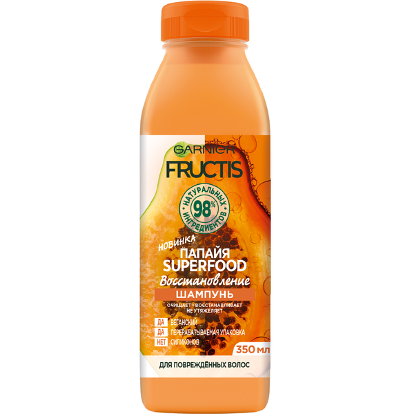 Нанесите на влажные волосы, вспеньте массирующими движениями. Затем тщательно смойте. При попадании в глаза немедленно промойте водой. После применения шампуня рекомендовано использование увлажняющего бальзама-ополаскивателя и маски для волос Fructis SuperFood Папайя.