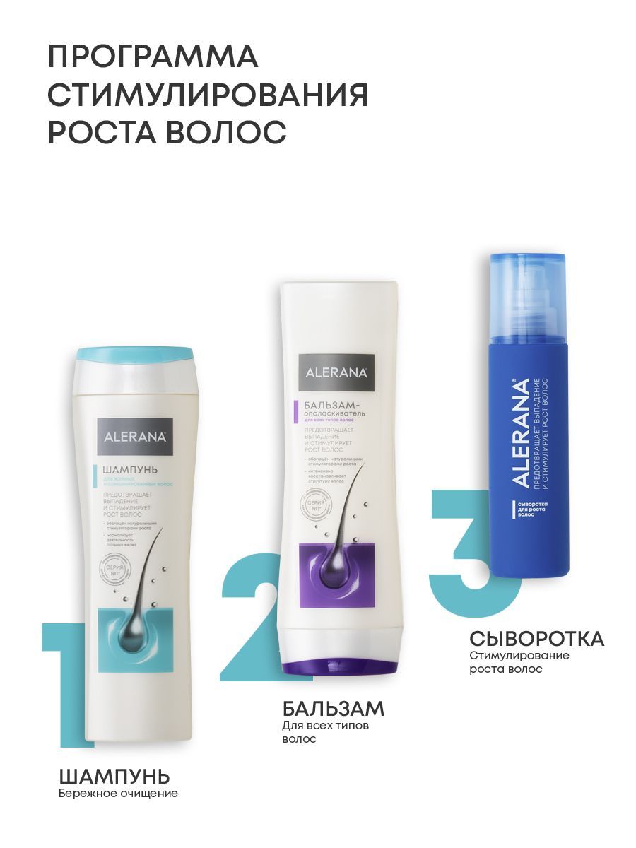 Нанести на влажные волосы, взбить пену, помассировать, распределить по всей длине волос. Оставить на 3 минуты, затем смыть теплой водой. Максимальный результат достигается при регулярном использовании шампуня. Подходит для длительного применения. После применения рекомендуется использовать бальзам-ополаскиватель или маску Alerana.