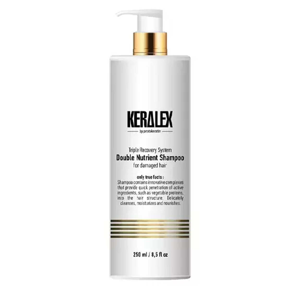 Интенсивный питательный шампунь Keralex Double Nutrient Shampoo включает инновационные комплексы, которые обеспечивают быстрое проникновение активных ингредиентов, таких, как растительные протеины, в структуру волос. Деликатно очищает, увлажняет, питает, поддерживает естественный баланс влаги и липидов кожи головы.