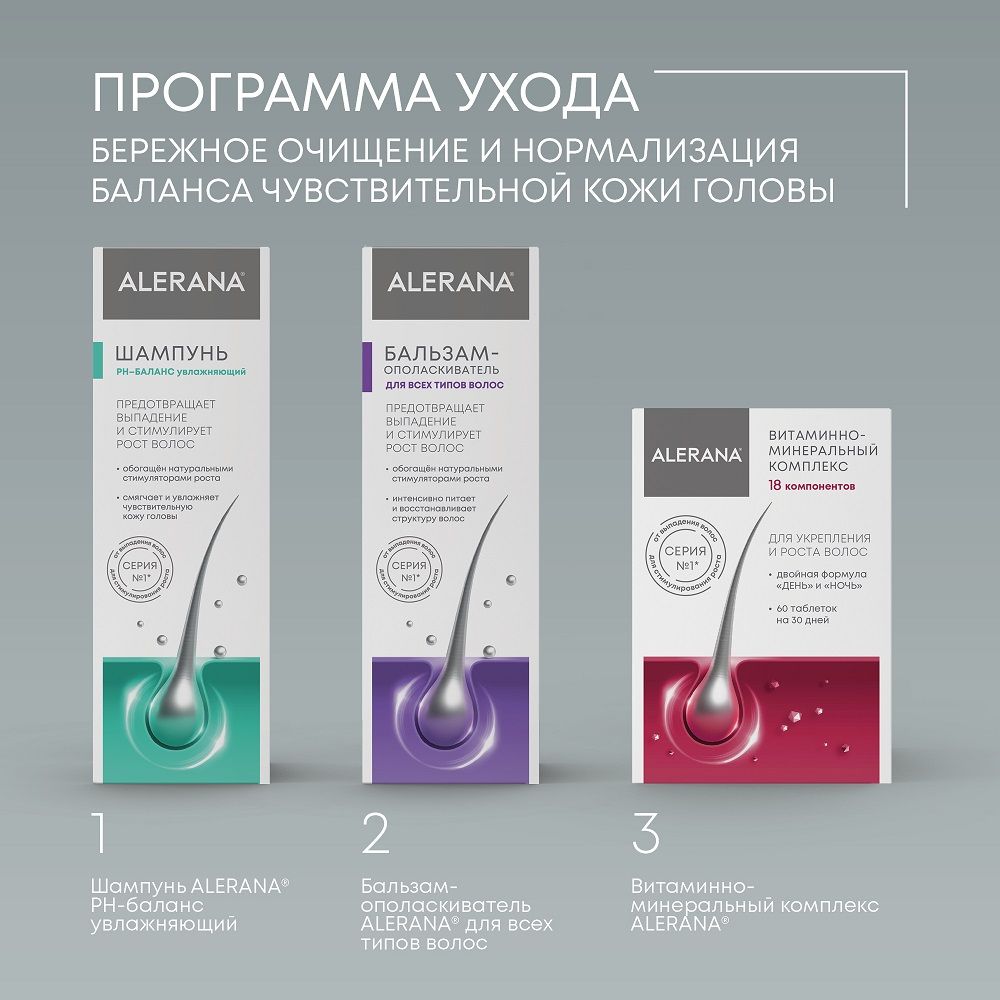 Нанести на влажные волосы и кожу головы, взбить пену, помассировать, распределить по всей длине волос. Оставить на 3 минуты, затем смыть теплой водой. Максимальный результат достигается при регулярном использовании шампуня. Подходит для длительного применения. После применения рекомендуется использовать бальзам-ополаскиватель или маску Alerana.