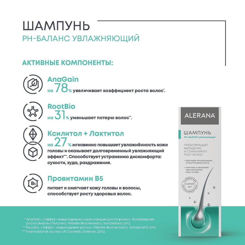 - натуральный стимулятор роста волос AnaGain – богатый фитонутриентами компонент воздействует на волосяные фолликулы, улучшает питание корней, активизирует рост волос, способствует повышению их густоты. Коэффициент роста волос +78%