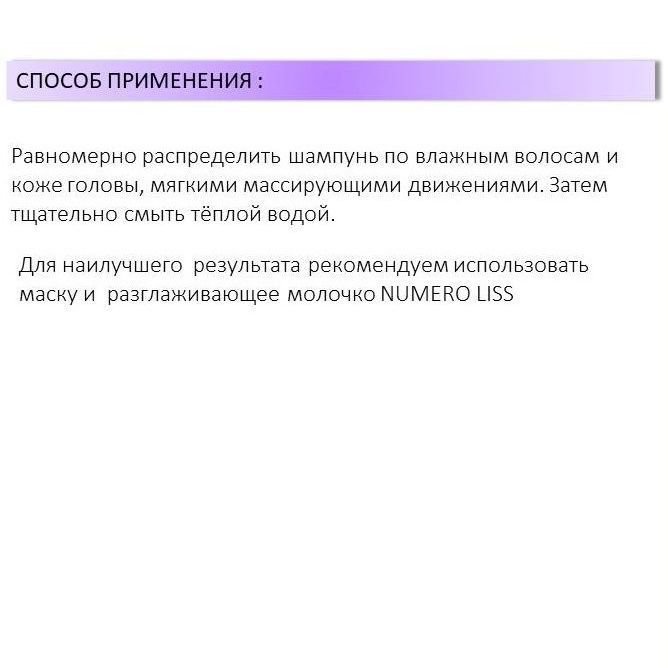 Нанесите небольшое колличество шампуня на влажные волосы, мягко массируя кожу головы и волосы по всей длине, включая кончики. Оставьте шампунь на несколько минут на волосах, а затем тщательно промойте волосы теплой водой. При необходимости повторите процедуру.