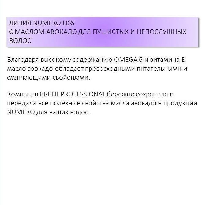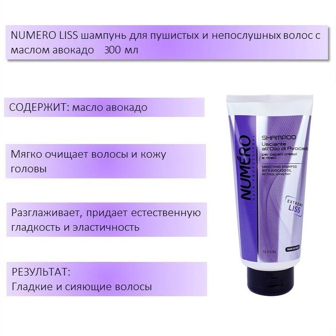 Шампунь Brelil Numеro Smoothing Shampoo With Avocado Oil предназначен для пушистых и непослушных волос. Его специальная формула нежно очищает и разглаживает волосы, придавая им естественную мягкость и эластичность. Масло авокадо содержит витамины, аминокислоты, микроэлементы, благодаря чему волосы становятся гладкими, послушными, блестящими и шелковистыми. Облегчает расчесывание, без утяжеления.