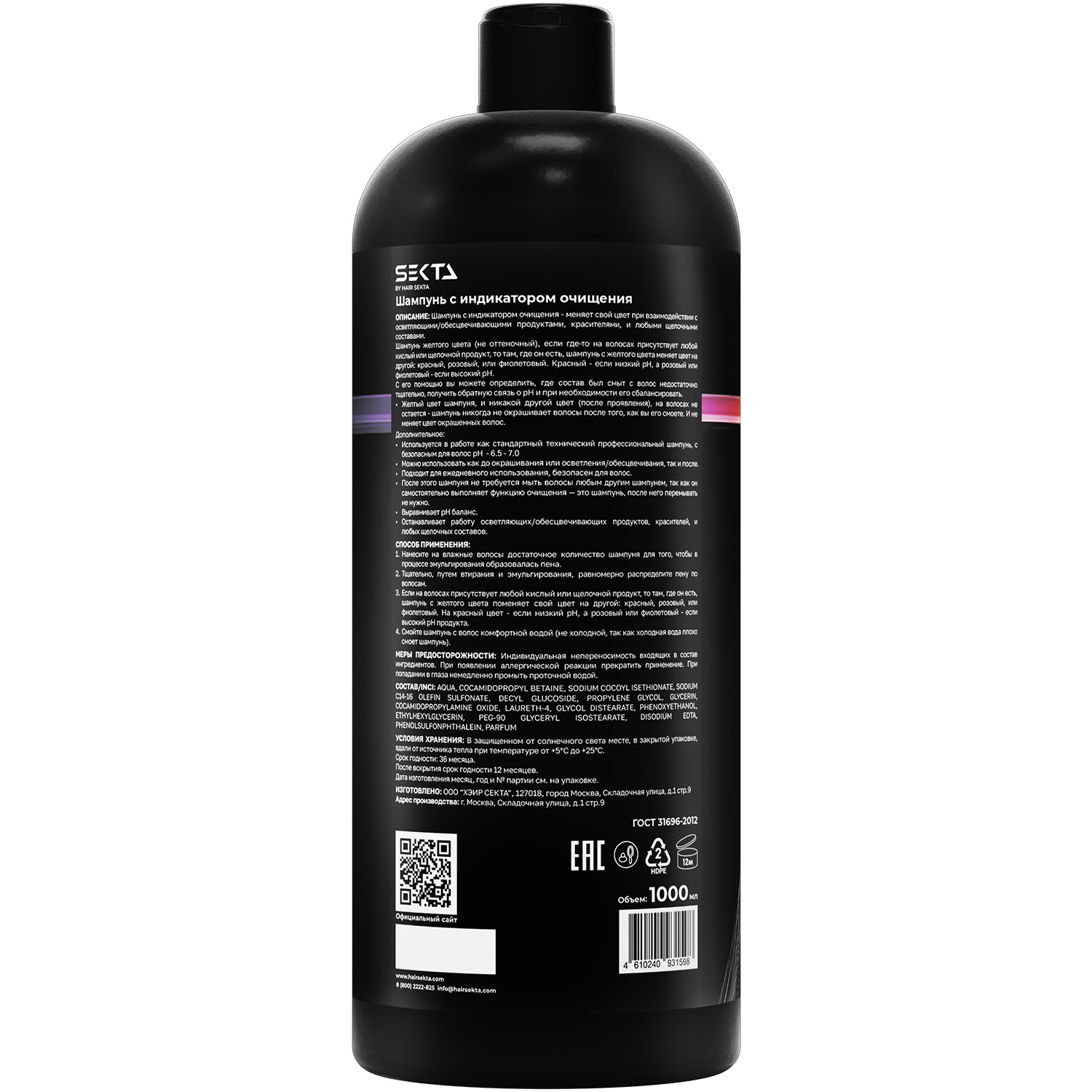 Работаю в салоне и использую его перед сложными техниками. Самое крутое индикатор: пена меняет цвет, если на волосах остались металлы, стайлинг или хлорка из бассейна. Ты сразу видишь, где нужно промыть еще раз. После него база идеально чистая, и краска ложится ровно, без сюрпризов. Очищает мощно, но волосы не превращаются в солому. Литрового объема хватает на вечность, дозатор очень удобный.