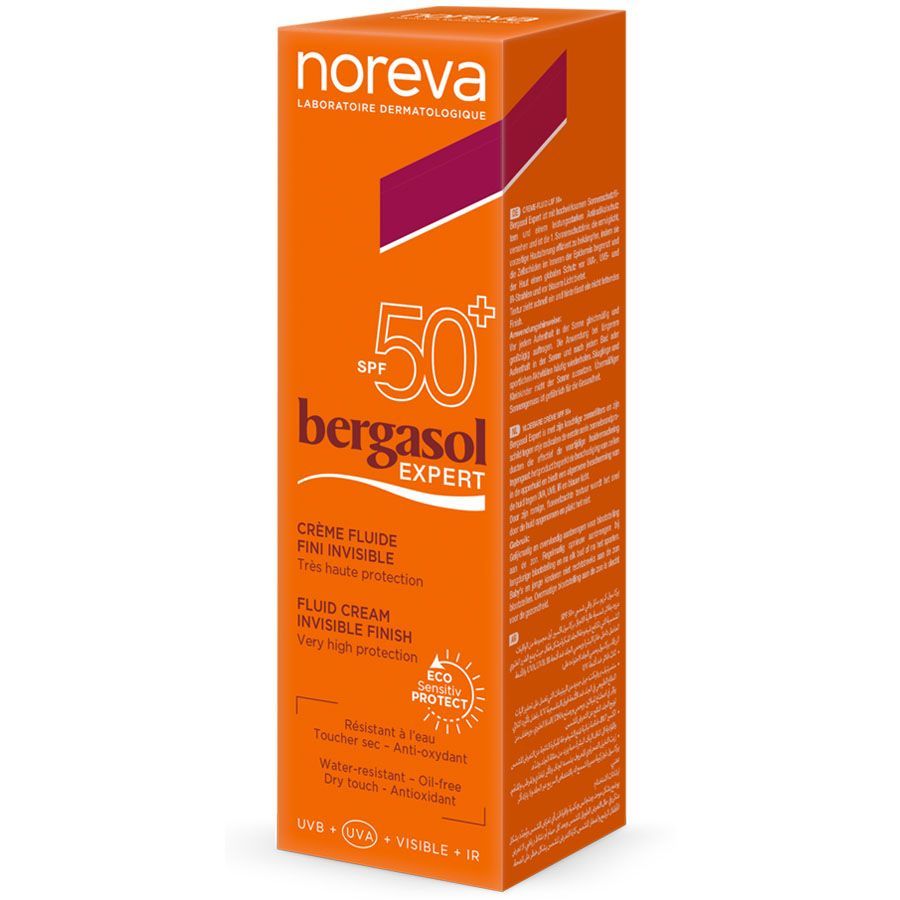 Легкий крем Noreva Бергасол Эксперт SPF50+ это солнцезащитный крем и мощный антирадикальный щит. Это серия солнцезащитных средств, позволяющая эффективно бороться с преждевременным старением кожи, ограничивая повреждение клеток эпидермиса и обеспечивая общую защиту кожи от UVA/UVB, ИК и синего света.