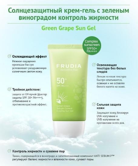 Солнцезащитный крем-гель с зеленым виноградом "Себум контроль" SPF50+/PA ++++, 50 г