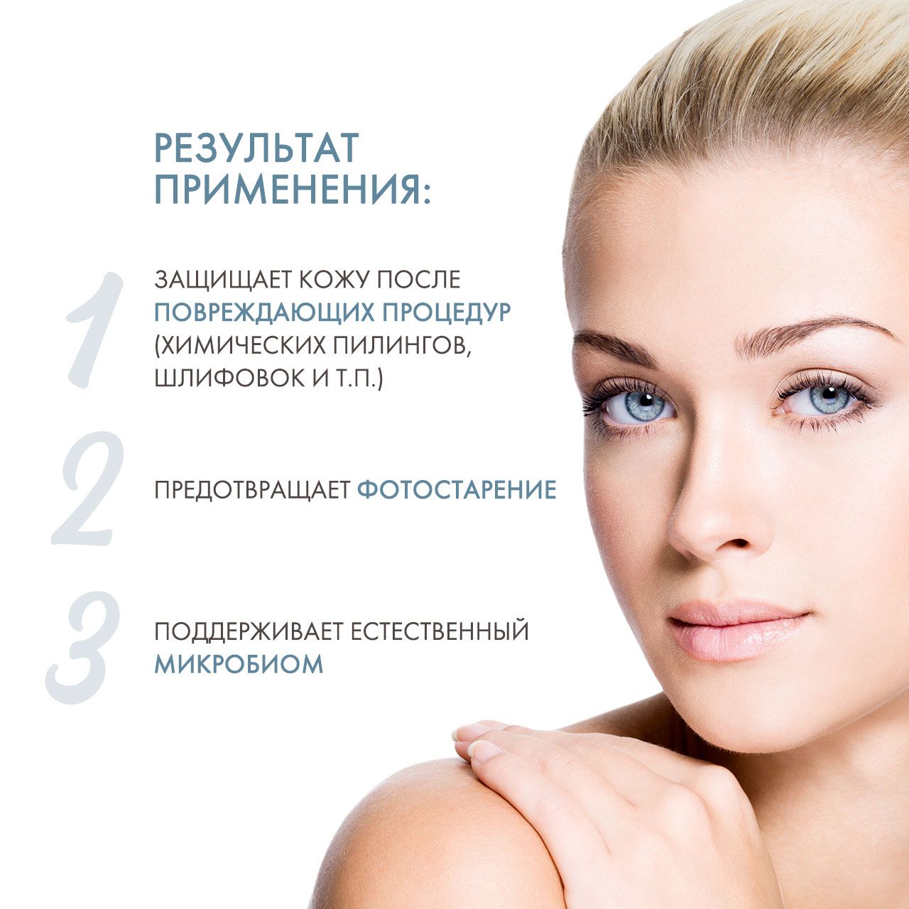 Оптимален для применения после повреждающих процедур (химических пилингов, шлифовок и т.п.), для защиты кожи в период интенсивной инсоляции, а также для предотвращения возникновения пигментации во время применения косметических средств, содержащих фотосенсибилизирующие компоненты.
