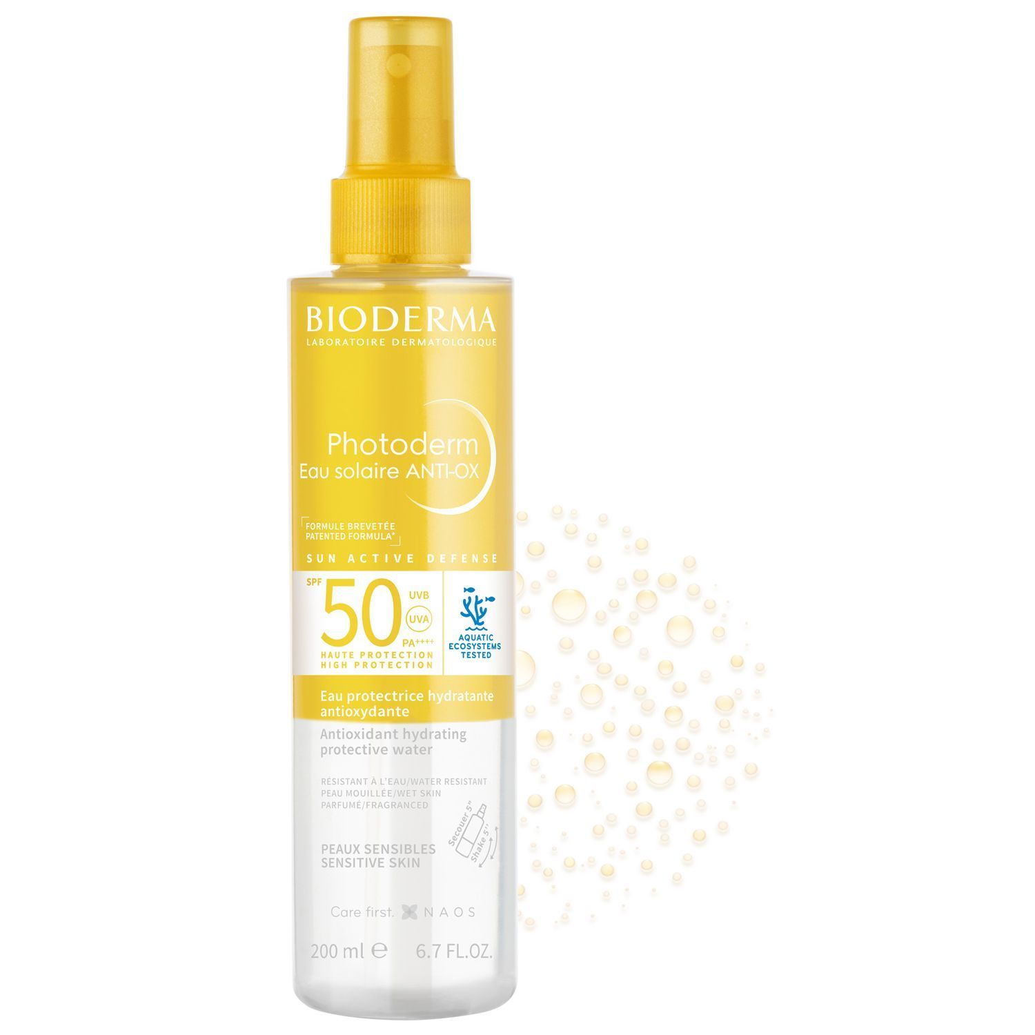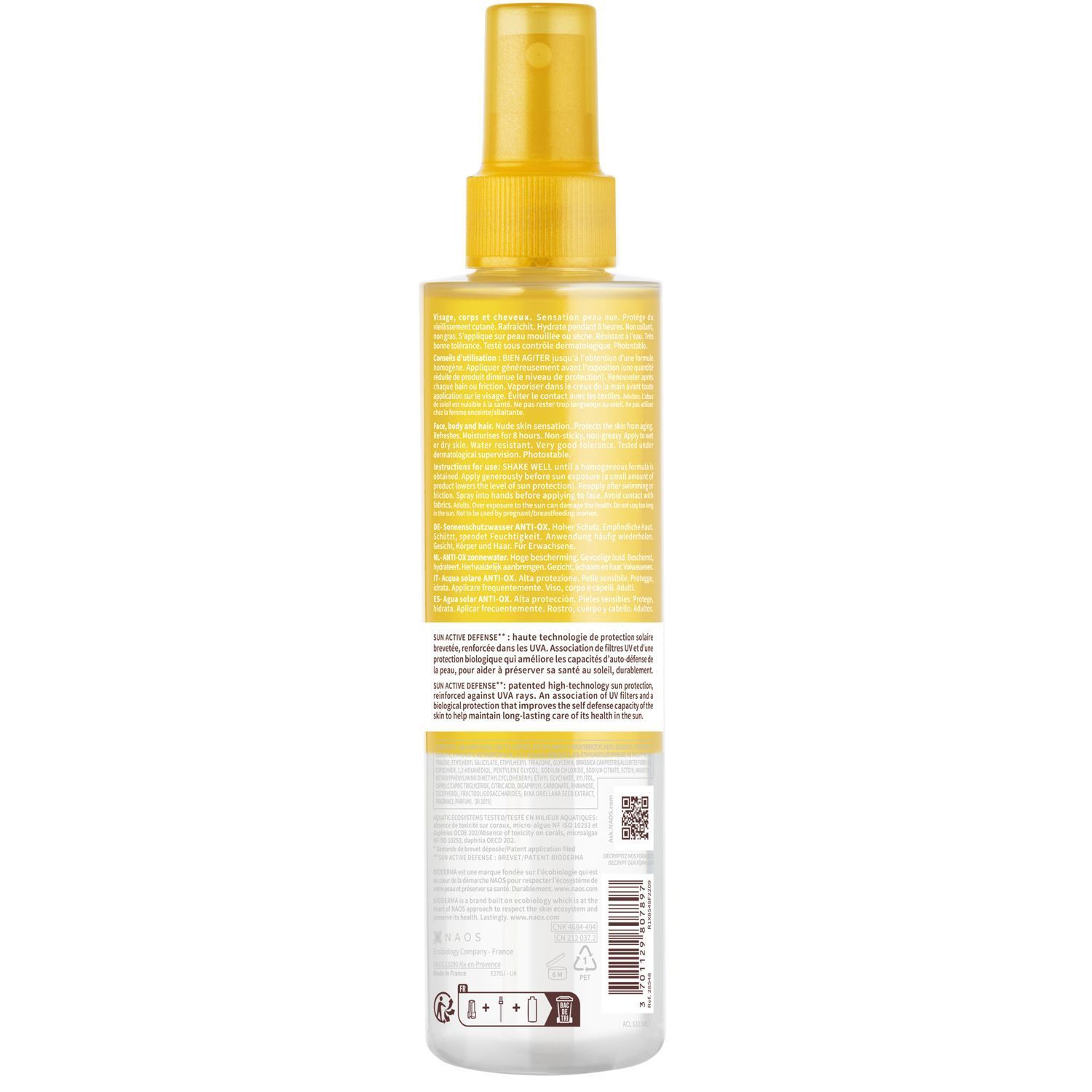 Солнцезащитный антиоксидантный увлажняющий спрей обеспечивает высокую степень защиты от солнца SPF 50 (защищает от UVB, UVA; PA++++). Увлажняет до 8-ми часов и защищает кожу от старения.