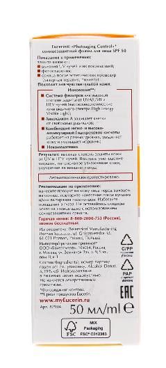 PHOTOAGING CONTROL солнцезащитный флюид против фотостарения SPF 50 - это средство повседневного ухода для всех типов кожи лица. Улучшенная спектральная технология сочетает широкополосные и фотостабильные UVA/UVB-фильтры1 для надежной защиты от UV-лучей с ликохалконом А для нейтрализации свободных радикалов, возникших под действием UV- и HEVIS-излучения. Это антивозрастное солнцезащитное средство также содержит глицирретиновую кислоту, которая поддерживает собственный механизм восстановления ДНК в клетках кожи.