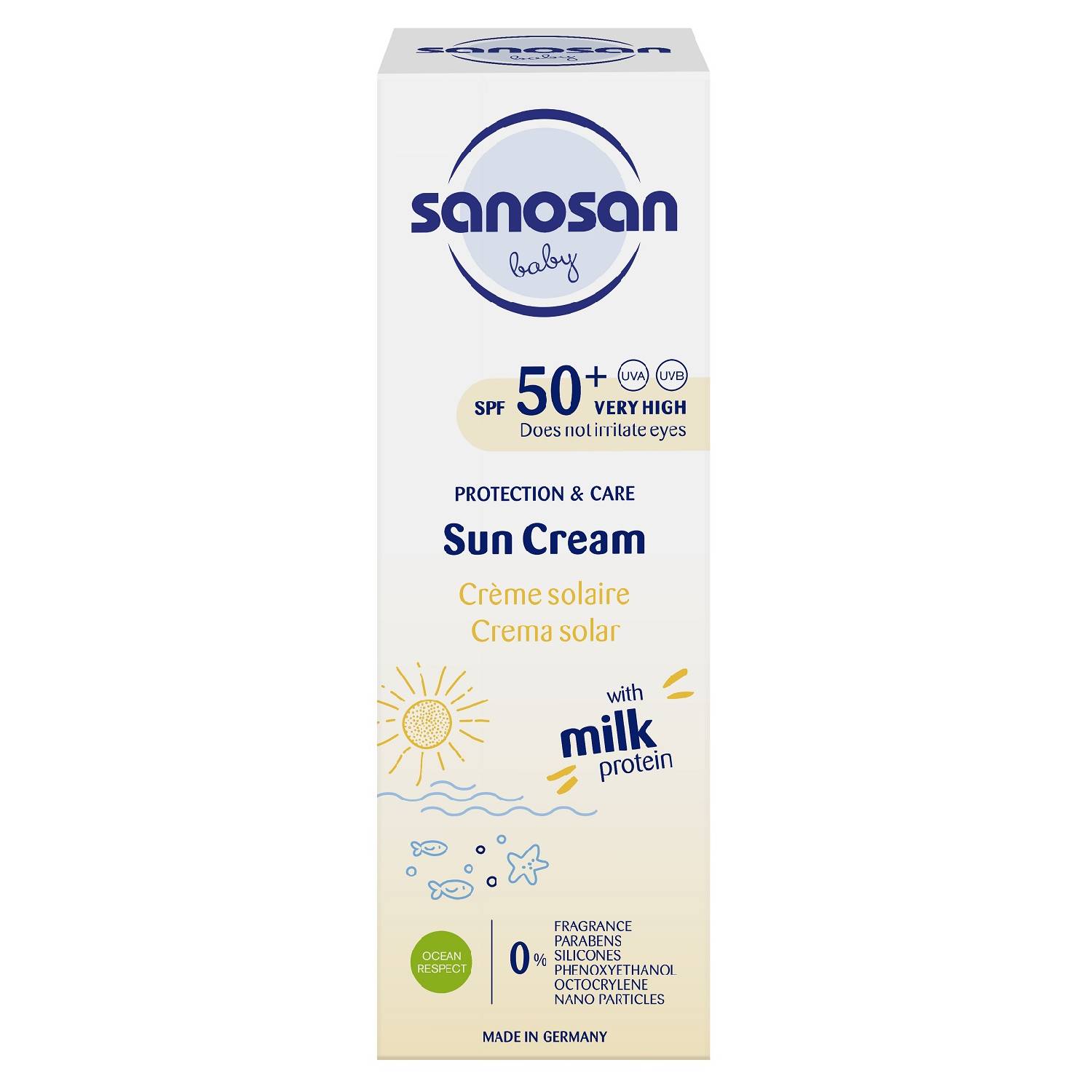 Крем разработан специально для надежной защиты от солнца нежной детской кожи. Подходит для всей семьи. Формула с ценными ингредиентами, такими как органический экстракт оливы, пантенол и витамин Е, увлажняет кожу и защищает от высыхания. Кожа под защитой от UVA и UVB лучей сразу после нанесения крема. Подходит для детей с рождения, детям с сухой и очень чувствительной кожей - для ежедневного использования.