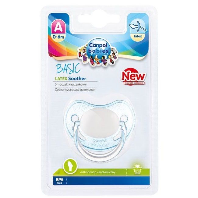 Пустышка анатомическая латексная Basic предназначена для малышей с рождения и до 6 месяцев - очень мягкая и приятная для ребенка, не слипается во время использования.