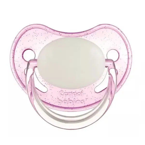 Соска пустышки имеет анатомическую форму, которая не влияет на формирование неправильного прикуса у малыша и обеспечивает свободное движение языка во рту. Благодаря специальным отверстиям на корпусе пустышка хорошо вентилируется, тем самым не вызывает раздражения вокруг рта малыша. Не содержит Бисфенол-А.