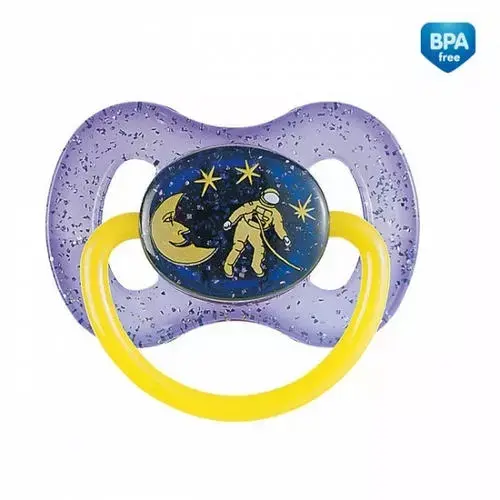 Пустышка круглая латексная "Space" изготовлена из высококачественного натурального латекса - она очень мягкая и приятная для ребенка, при этом не слипается во время использования.