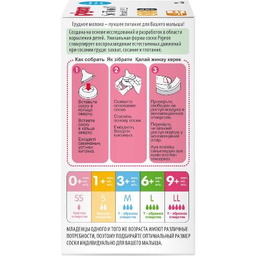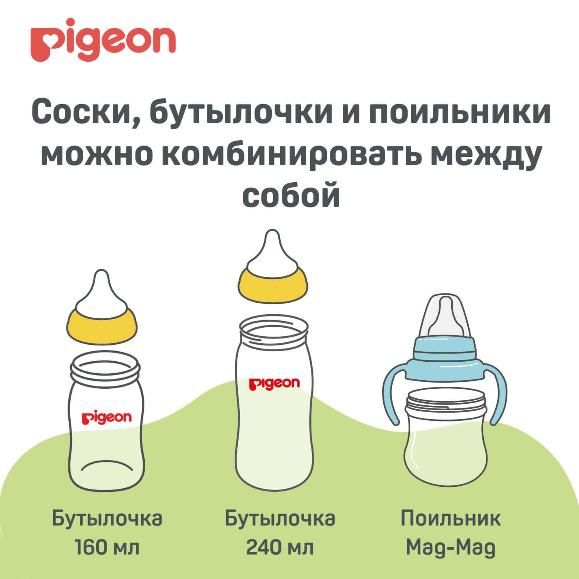 Откройте упаковку, закрепите соску на бутылочке и дайте малышу, подходит для всех бутылочек Pigeon с широким горлышком и поильнков MagMag шаг 2.