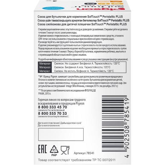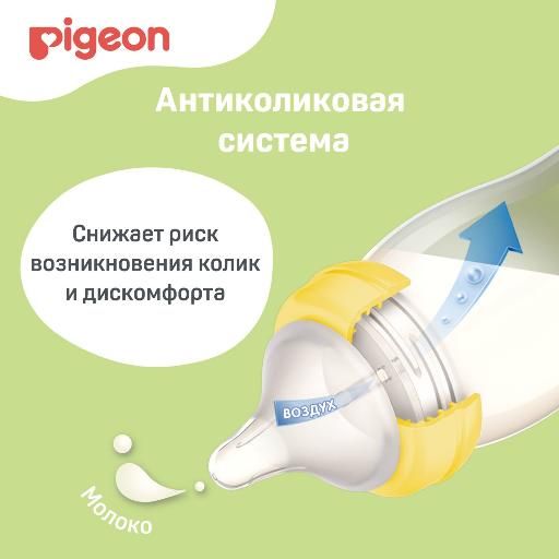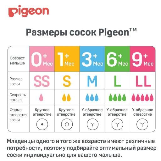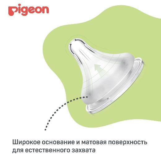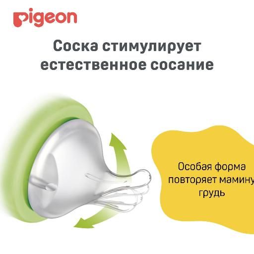 Соска запасная к бутылочке для кормления Pigeon разработана специально для младенцев на грудном вскармливании на основе научно-практических исследований лаборатории Pigeon. Создана в поддержку грудного вскармливания. Не вызывает путаницы сосков. Уникальная конструкция соски позволяет воспроизводить естественные механизмы сосания груди матери. Прошла клинические исследования (НЦЗД РАМН, 2013г.). Соска изготовлена из очень мягкого, эластичного и плотного силикона, уникальная конструкции соски стимулирует естественное сосание. Матовая текстурированная поверхность способствует надежному захвату соски. Размер S (1-3 мес.). Запатентованная вентиляционная система способствует равномерному поступлению молока. Снижает риск возникновения колик. Не содержит Бисфенол-А. Подходит для всех бутылочек Pigeon с широким горлышком и поильнков MagMag шаг 2.