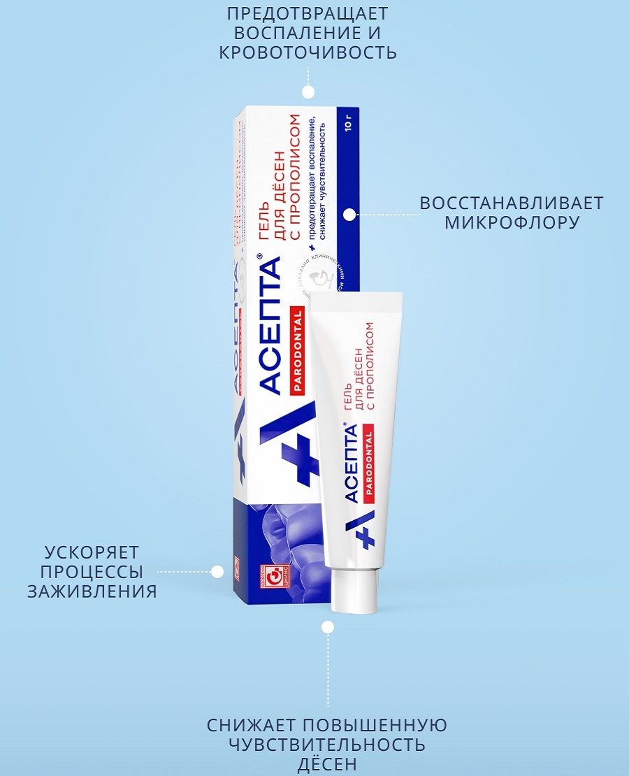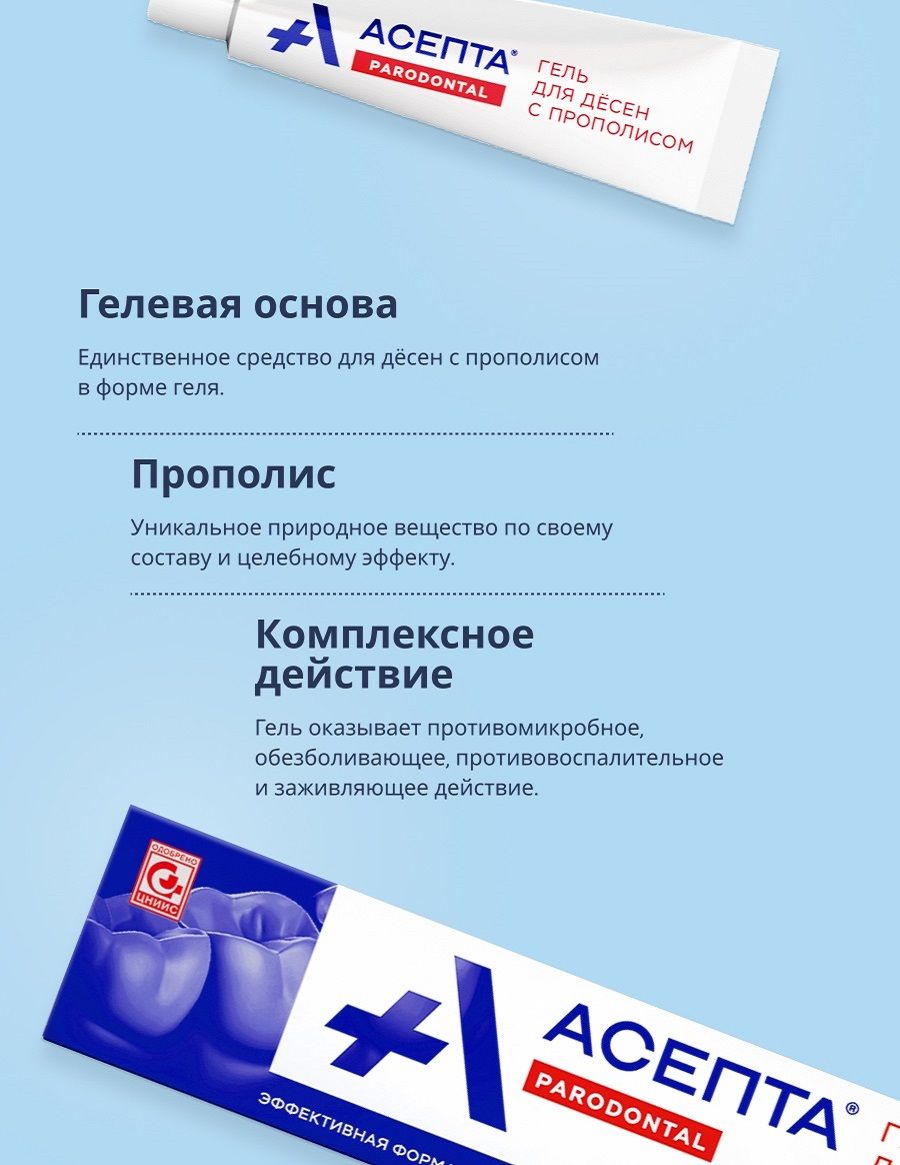 Противомикробный гель АСЕПТА предназначен для лечения воспалительных заболеваний полости рта:
