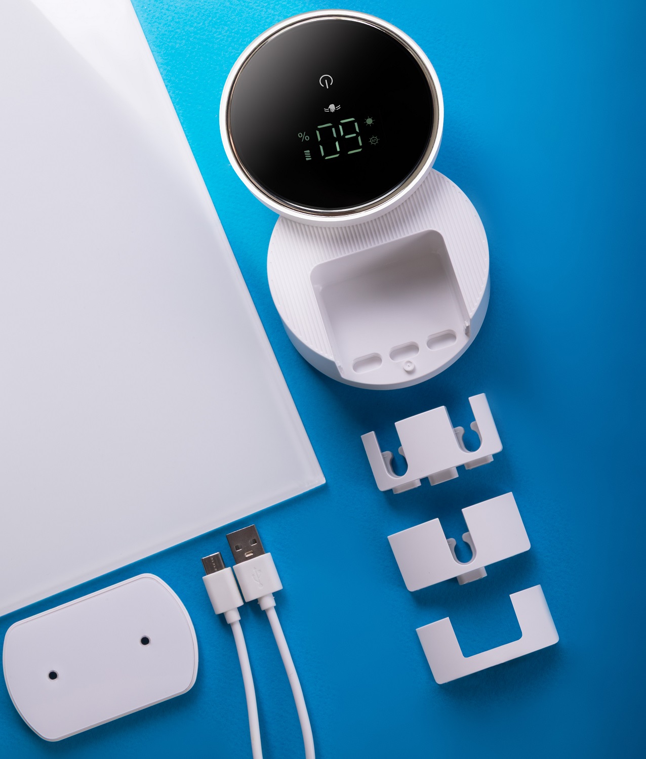 Перед использованием прибора снимите с самоклеящегося крепления защитную пленку и прикрепите его к стене или другой ровной вертикальной поверхности. Через 24 часа на крепление можно устанавливать стерилизатор.