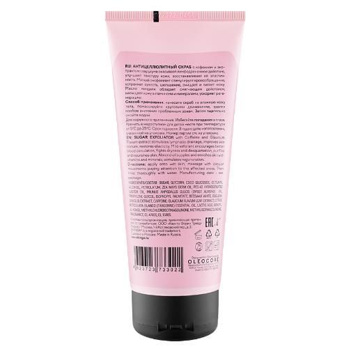 Нанесите скраб на влажную кожу тела, помассируйте круговыми движениями, уделяя особое внимание проблемным зонам. Затем тщательно смойте водой.