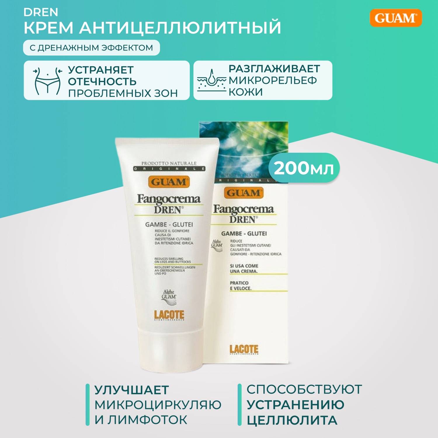 Средство обладает выраженным дренажным эффектом - способствует снятию отёчности. Активные компоненты стимулируют расщепление жиров и способствуют устранению целлюлита.
