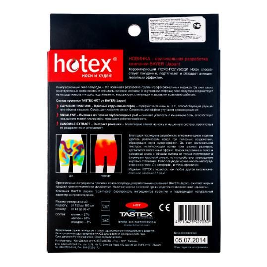 Корректиующий пояс-полубоди разработан по оригинальной технологии и влияет на проблемные области бедер и живота. Обладает уникальными свойствами похудения и антицеллюлитным эффектом, а так же позволит сделать Вашу фигуру изящнее без каких-либо усилий. Вы станете выглядет на 1-2 размера стройнее, т.к. корректирующие пояс-полубоди моделирует тело таким образом, что, живот втягивается, ягодицы приподнимаются. Это белье незаметно под одеждой, вы можете надеть корректирующее белье под платье или другой наряд. Корректирующий пояс-полубоди черный Hotex рекомендуется надевать под темную одежду.