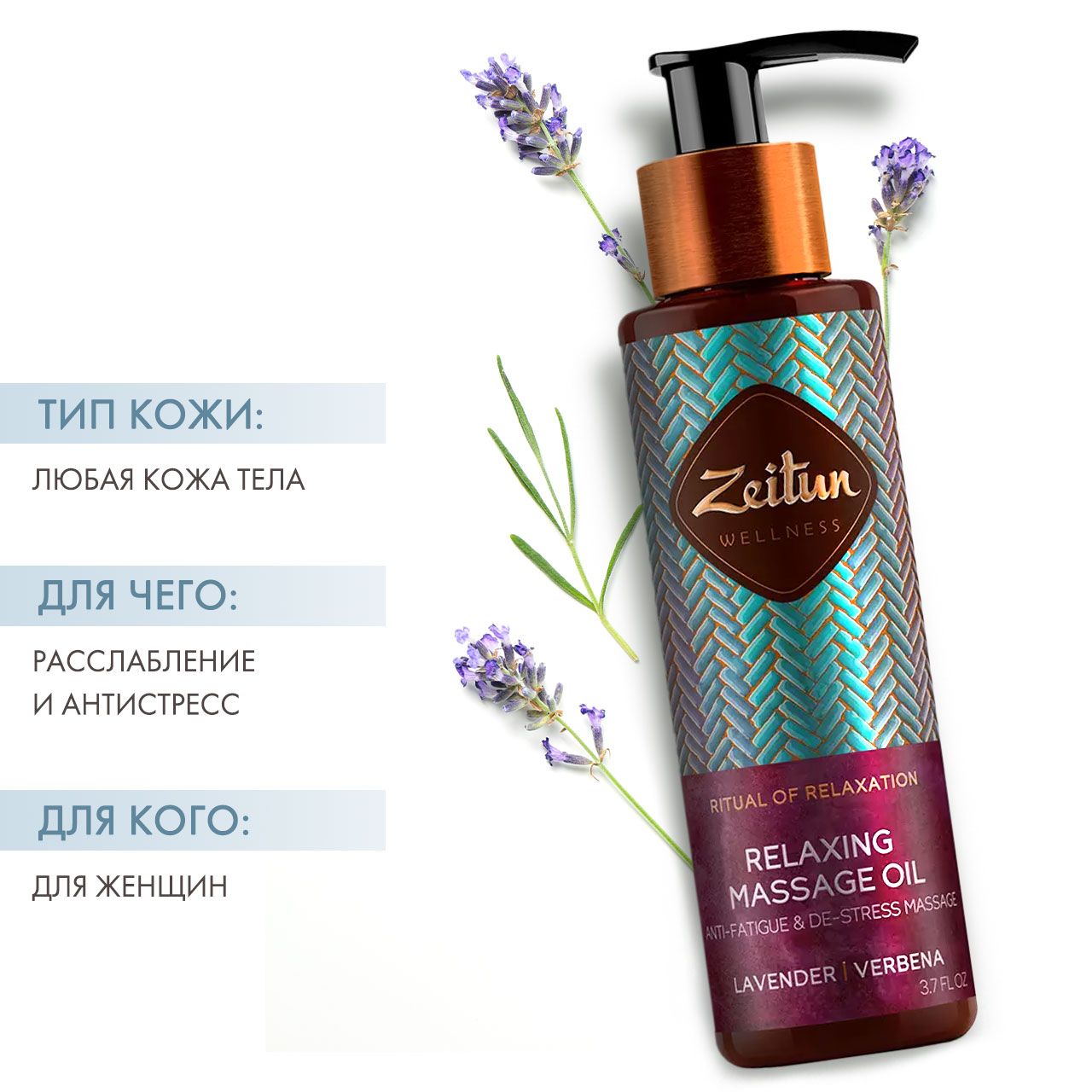 Насладитесь расслабляющим антистрессовым массажем с натуральным средством от Zeitun Wellness. Массажное масло со сбалансированным термо-эффектом обеспечивает ощутимое и правильное расслабление мышц, аромакомпозиция эфирных масел лаванды и вербены снимает дневное напряжение, нейтрализует последствия стресса, успокаивает нервную систему и облегчает головную боль. Легкое масло сладкого миндаля в основе средства дарит великолепный увлажняющий и смягчающий уход вашей коже и обеспечивает легкое скольжение рук во время массажа.