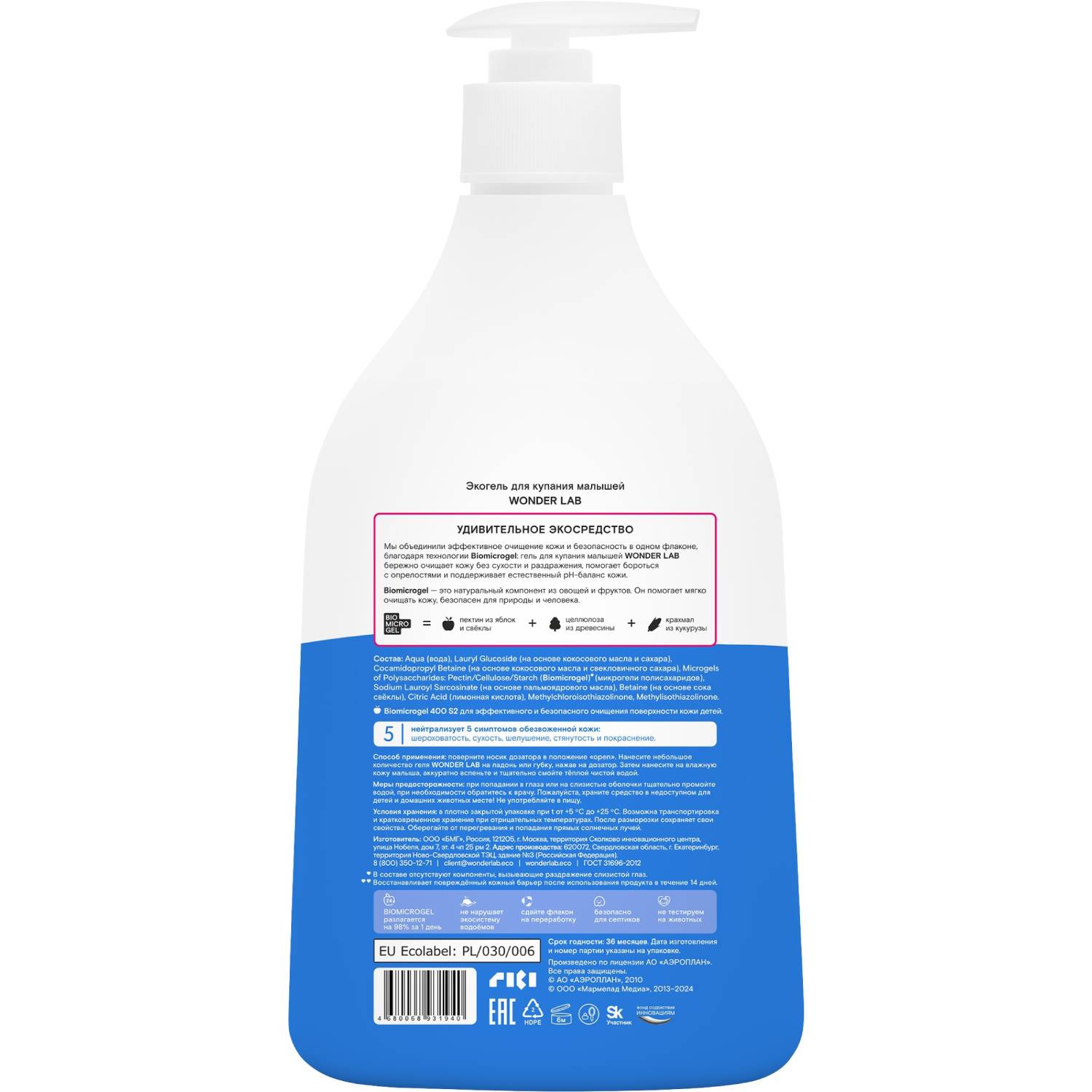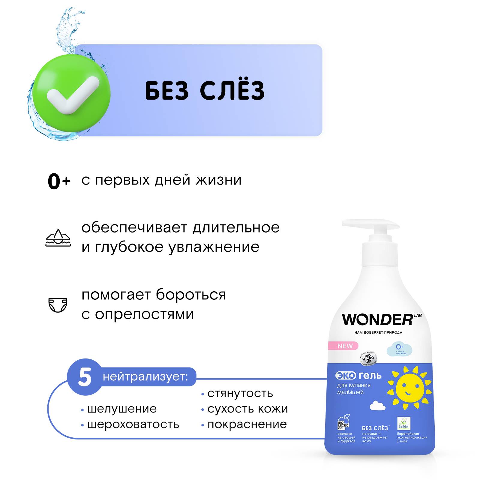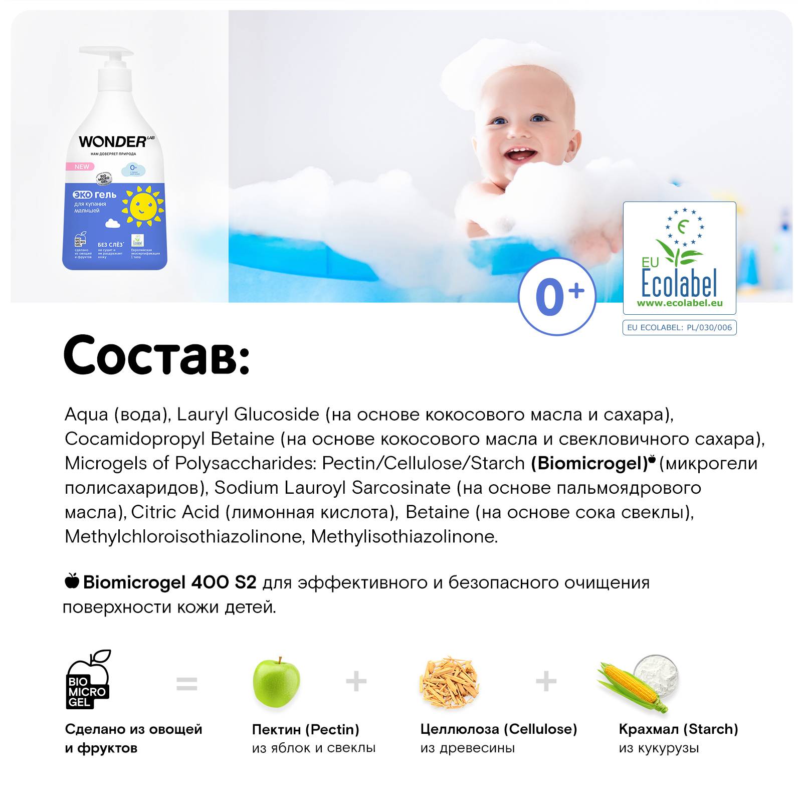 Гель для мытья младенцев полностью безопасен, в его составе нет SLES, SLS, парабенов, силиконов, минеральных масел и отдушек.