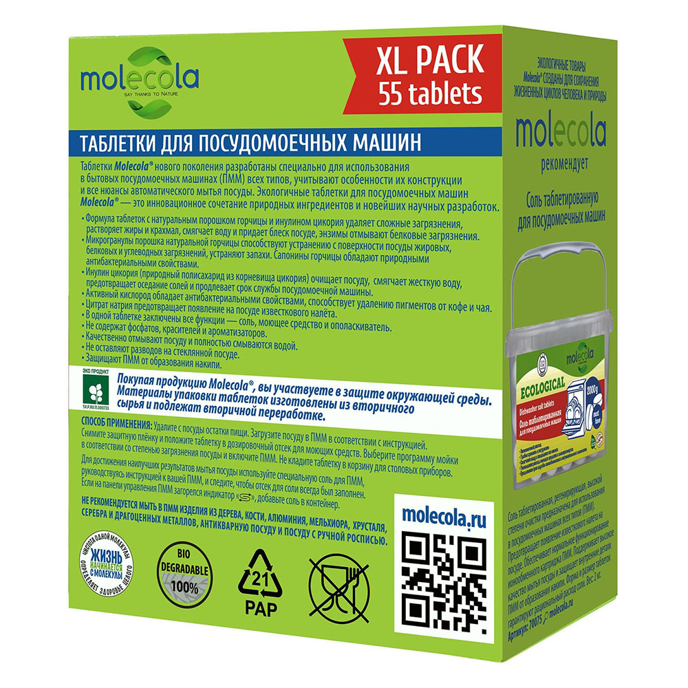 Экологичные таблетки для посудомоечных машин, 55 шт