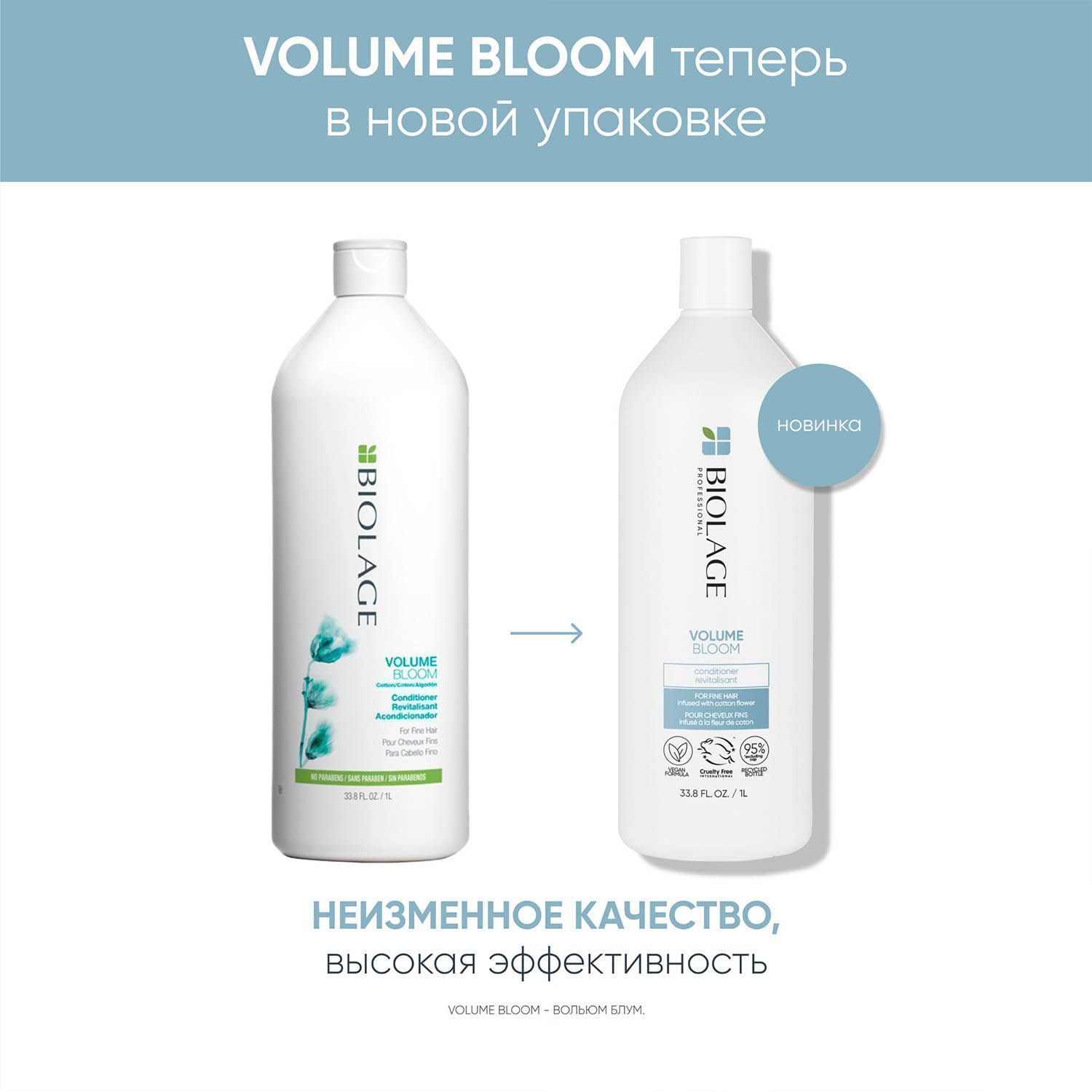 Тонким волосам часто не хватает объёма, они с трудом поддаются укладке, а также спутываются, приводя к механическим повреждениям. Кондиционер Volumebloom разглаживает и увлажняет волосы, предотвращая их спутывание, ломкость и сечение.