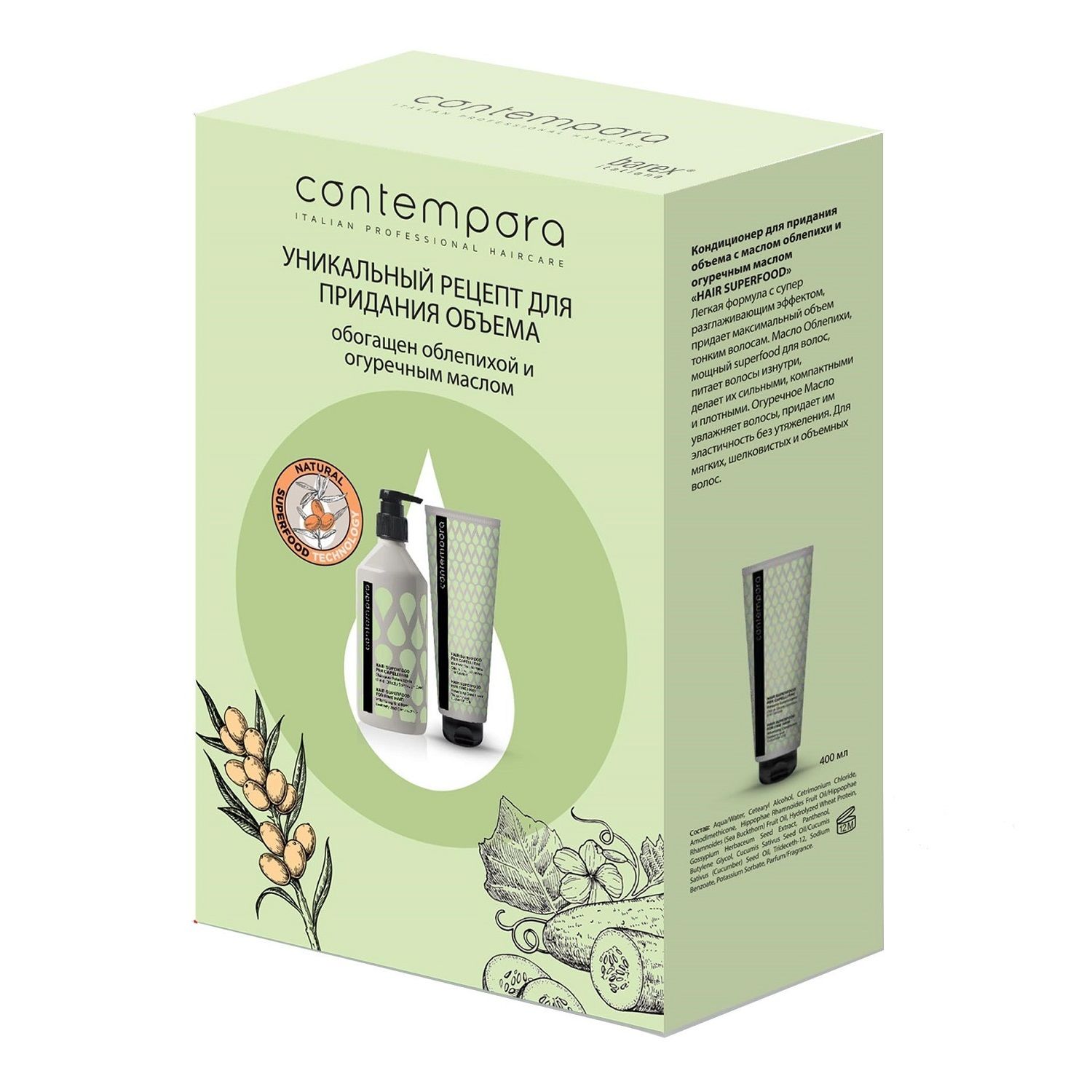 2. Бальзам -кондиционер для придания объема Volumizing Conditioner Seaberry and Cucumber Oils, 400 мл