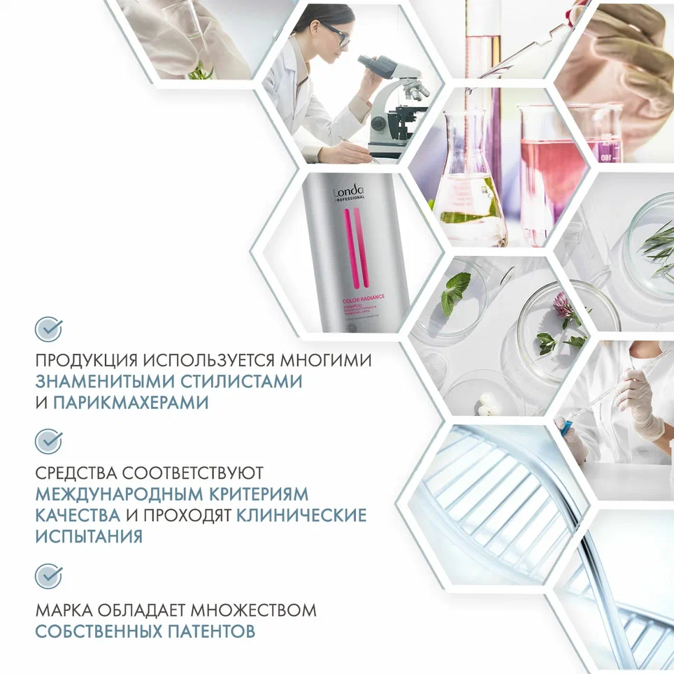 Шампунь для окрашенных волос, эффективно и бережно очищает локоны, не способствуя вымыванию цвета, одновременно восстанавливает ослабленные химическим воздействием пряди. Под влиянием окрашивающих компонентов волосы становятся тонкими, ломкими и теряют естественный блеск, профессиональный шампунь от Londa помогает защитить локоны, придает им яркость и сияние. Экстракт маракуйи и апельсиновой цедры питают кожу головы витаминами, возвращают ослабленным прядям естественную силу. Разглаживая стержни волос, растительные компоненты шампуня делают локоны послушными, мягкими и эластичными. Главными действующими ингредиентами профессионального шампуня для окрашенных волос Лонда являются микроионы Radialux, которые целенаправленно воздействуют на поврежденные участки волос, восстанавливая структуру прядей, бережно удаляют остатки красящего вещества, предотвращая их вредное воздействие. В то же время, содержащиеся в шампуне полимеры блокируют вымывание цвета, надолго обеспечивая модниц сияющими прядями. Ежедневное использование данного средства обеспечивает волосам мощную защиту и оказывает лечебное действие.