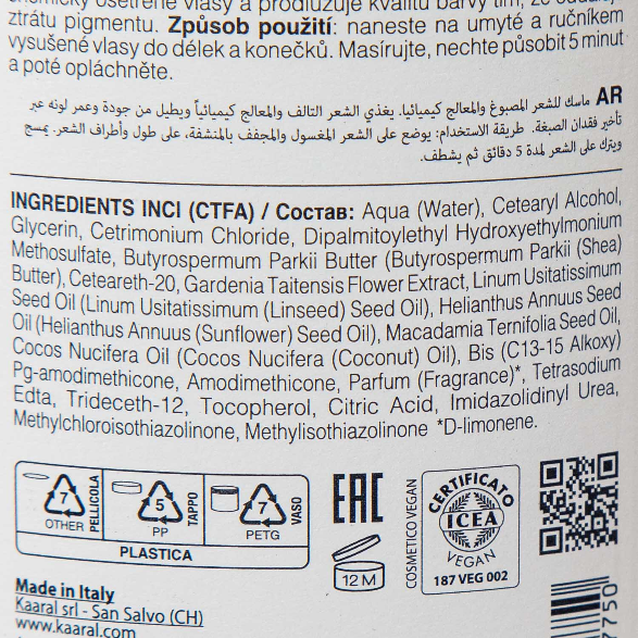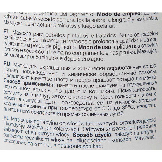 Эффективное сочетание драгоценных масел обеспечивает питание поврежденных и химически обработанных волос, продлевая качество окрашивания и предотвращая утрату пигмента. Подходит веганам.