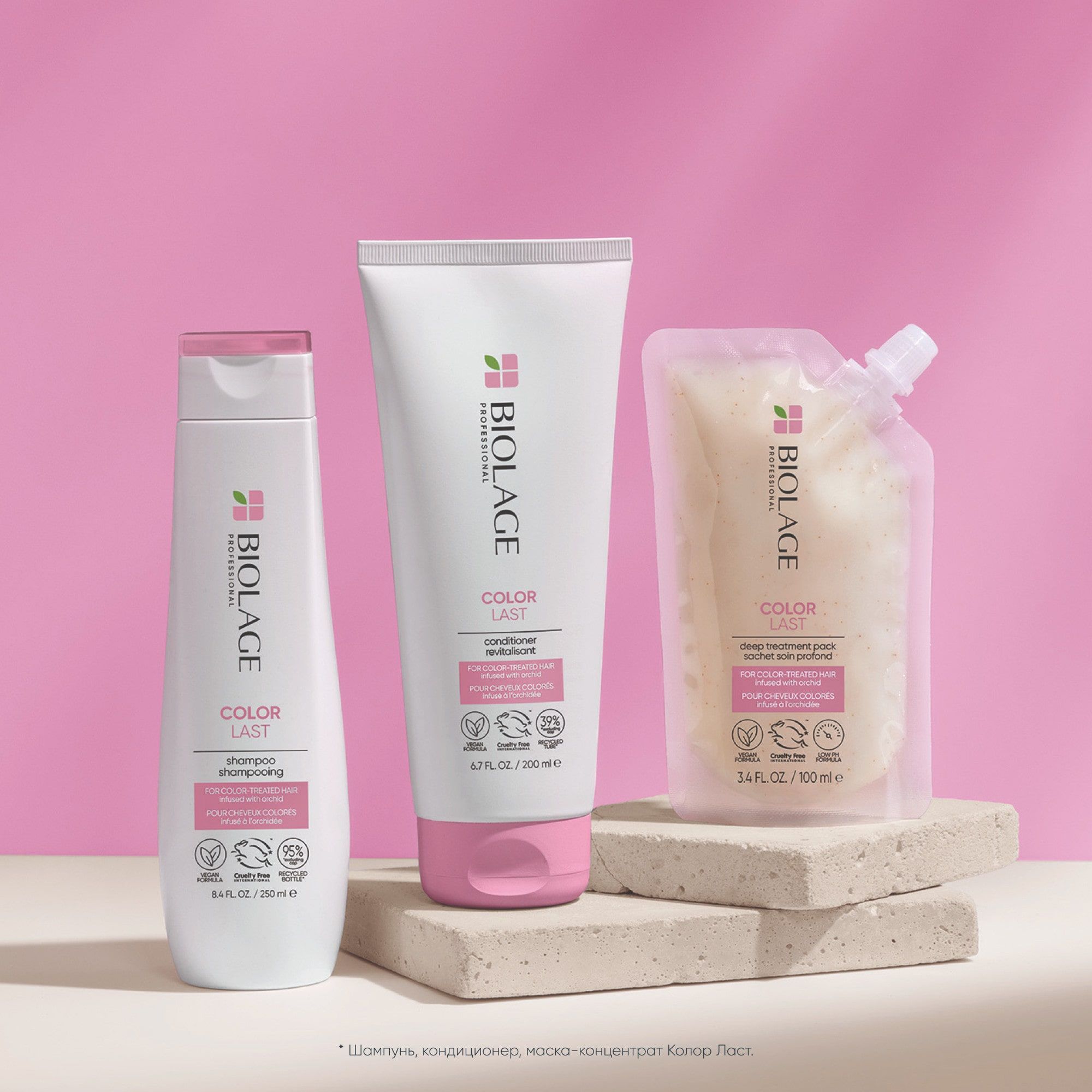 Для достижения оптимального результата и наилучшей защиты цвета окрашенных волос используйте другие средства гаммы Biolage Colorlast.